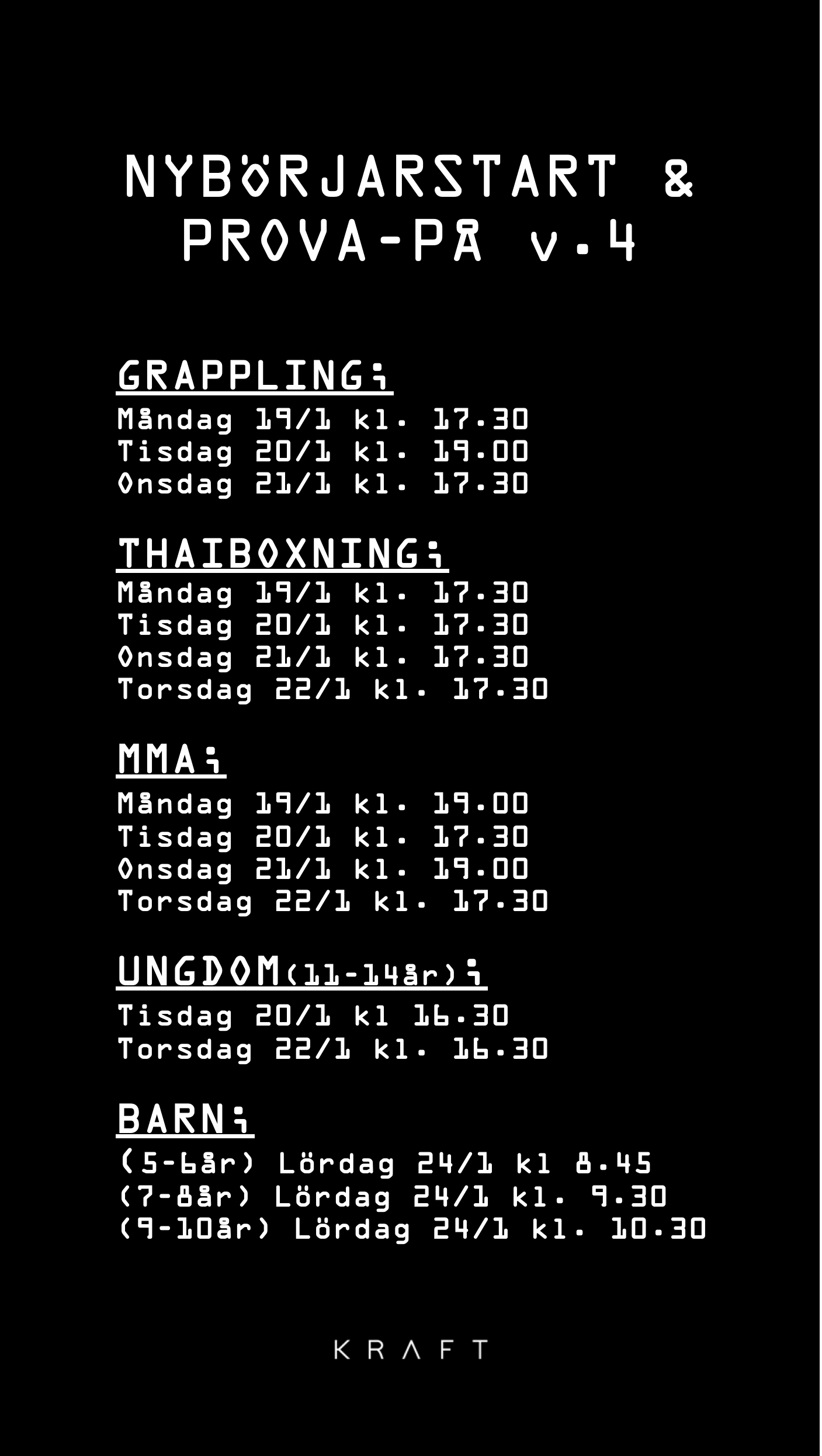 under vecka 4. Du är välkommen att prova träningen Gratis vid ett tillfälle!