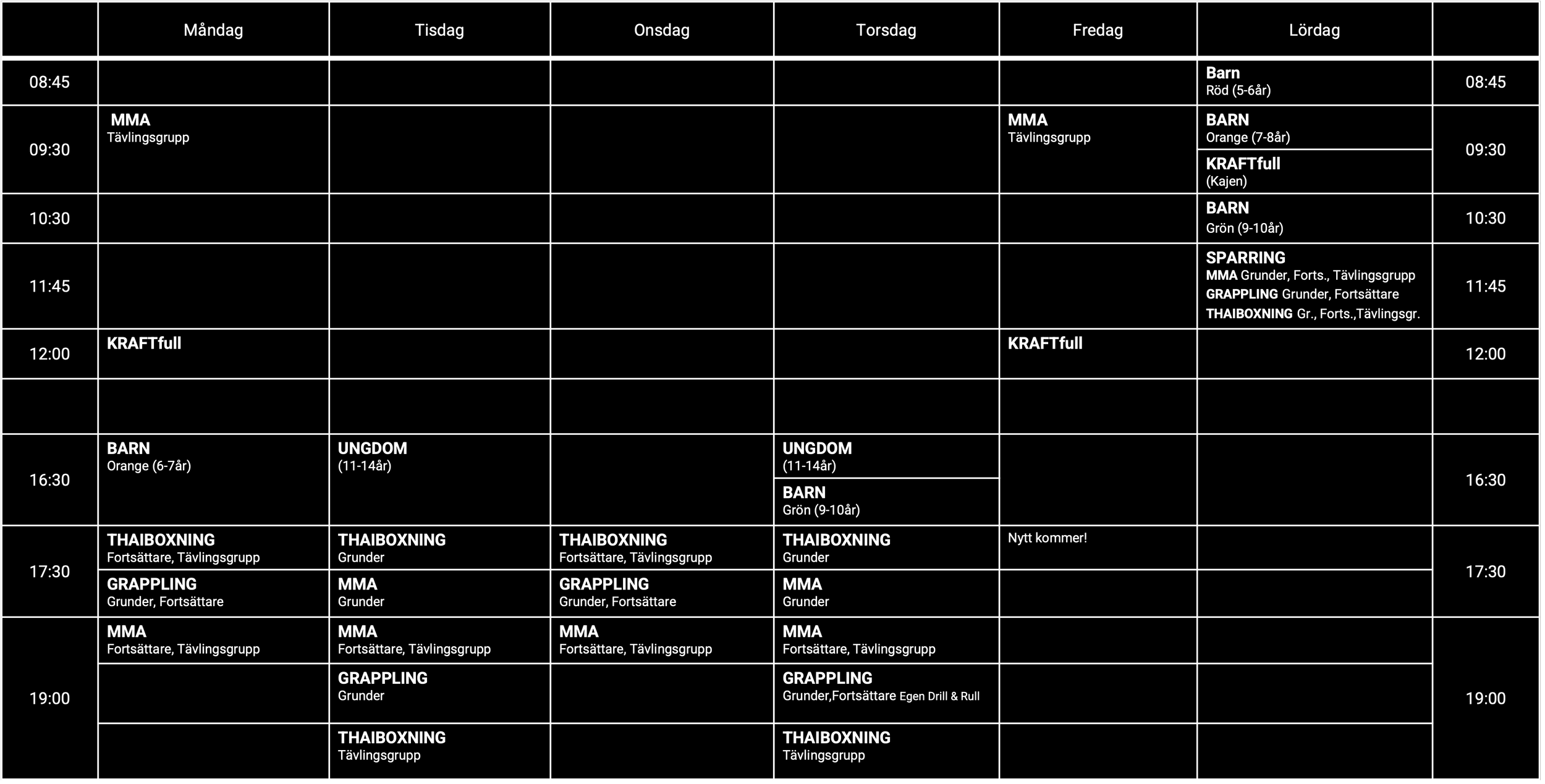 Kampsportsklasser i veckan